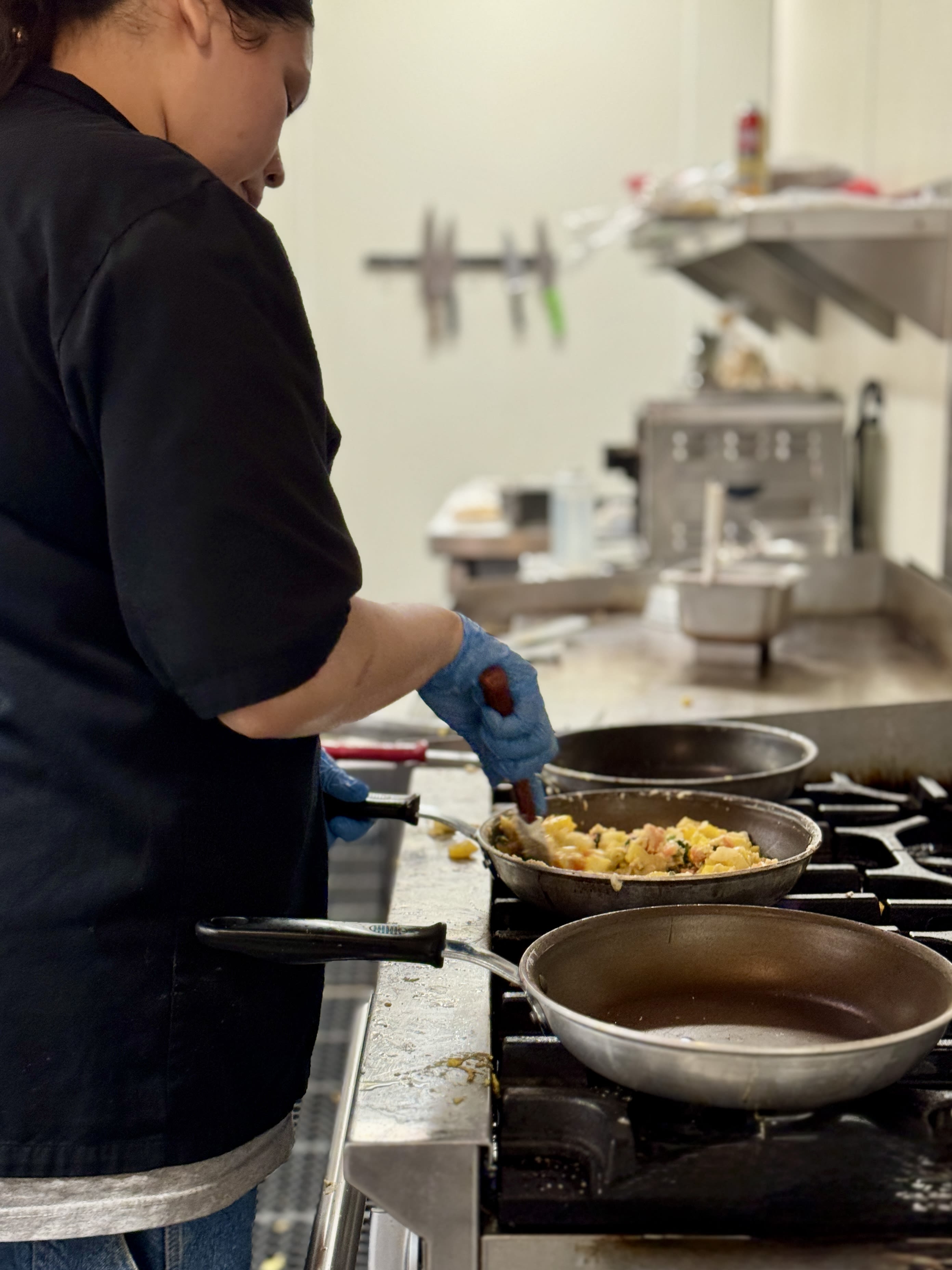 Culinary Services worker Ana Hernandez, the sole cook at ACCESS Harbor Learning Center North, believes the same because she sees the impact firsthand every day. Prior to the implementation of scratch cooking, many of the students would decline to eat lunch. Now, far fewer meals are left uneaten.